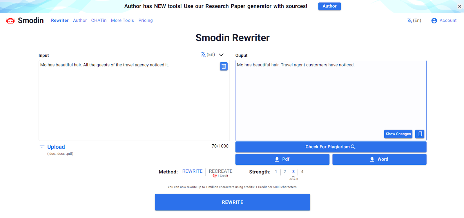 Smodin is the ideal writing assistance for students seeking help writing essays, assignments, or articles. It features a user-friendly website interface, an effective rewriting tool, a plagiarism checker, natural language generation technology, and Smodin.io Author features that customizes your writing experience to suit your needs. Smodin.io can help students of all levels create original and high-quality pieces, perfect for scoring the best grades.